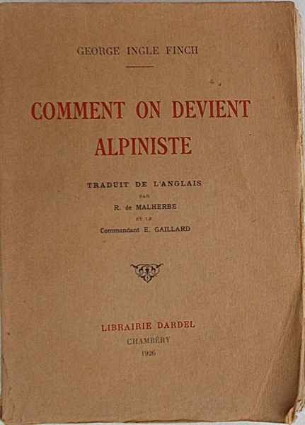 In 16° grande (cm. 19 x 14); pagg. (8), 327; con 31 tavv. fotog. f.t.; leggera carton. origin. VG-. ** Prima edizione francese. L'autobiografia di un validissimo alpinista, divenuto, ormai ultrasettantenne, presidente dell'Alpine Club e non un manuale, come lascia intendere erroneamente il titolo. Un bel classico ("Un classique de l'alpinisme" - Perret) illustrato con numerose foto di arrampicata.