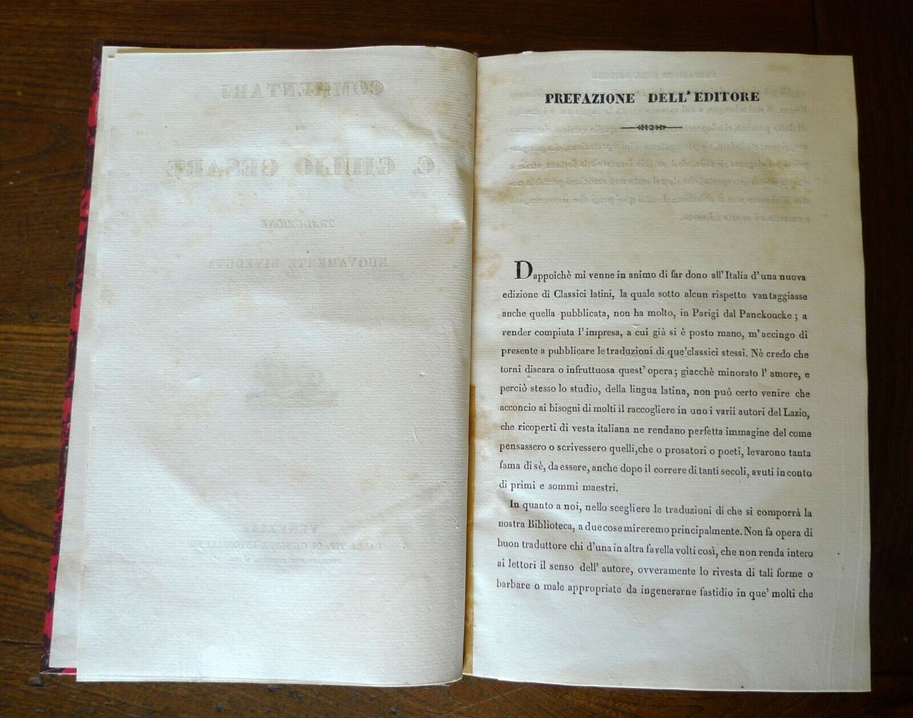 - C.J. CAESARIS OPERACUM LECTISSIMIS VARIORUM NOTISQUIBUS SUAS ADJECERUNT E. JOHANNEAU ET J. MANGEART.COMMENTARI DI C. GIULIO CESARETRADUZIONE NUOVAMENTE RIVEDUTA.Venetiis, excudit Joseph Antonelli,Venezia, dalla Tip. di Giuseppe Antonelli Ed., 1836
