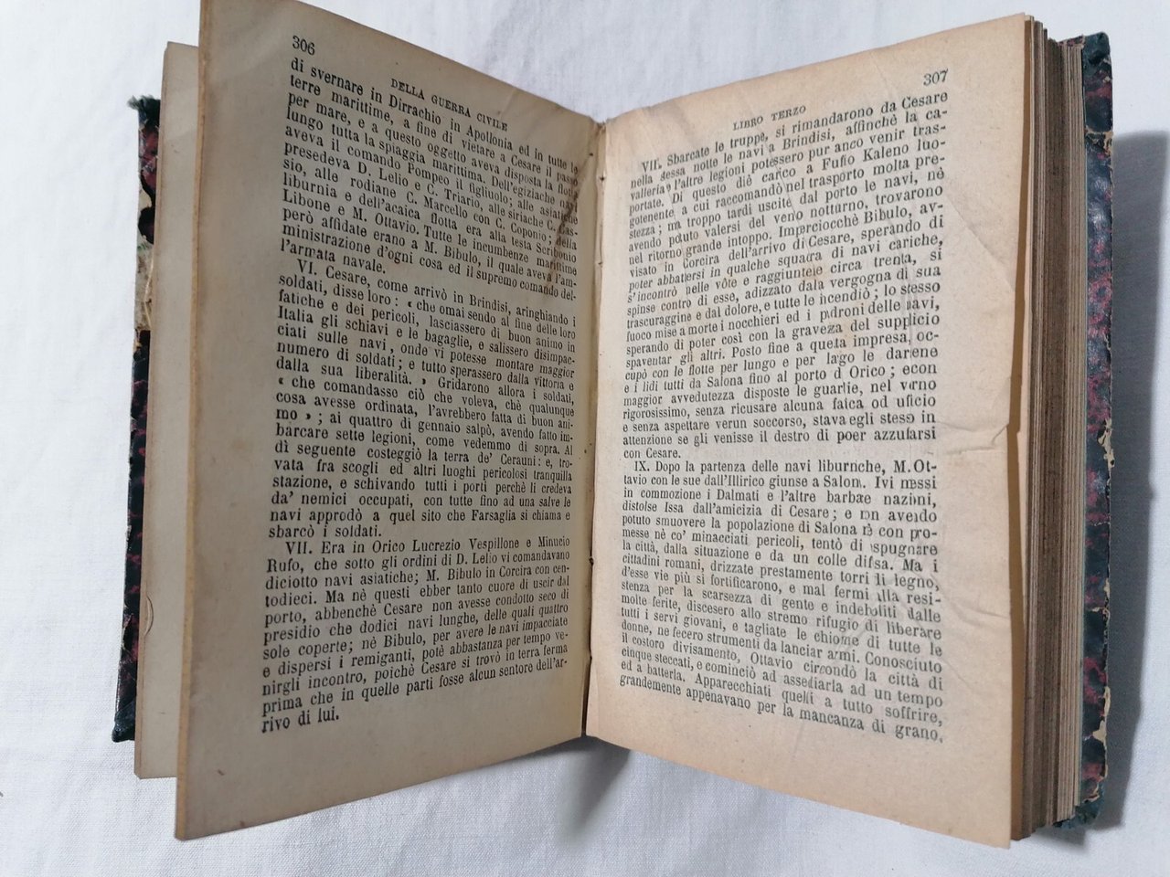 Commentari di Giulio Cesare sulla guerra gallica recati in italiano da Camillo Ugoni Guigoni, Milano, 1879 in-16, leg. in mezza tela, pp. 507 Condizioni: discrete compatibilmente con l'età (qualche segno di usura in copertina, interno buono)