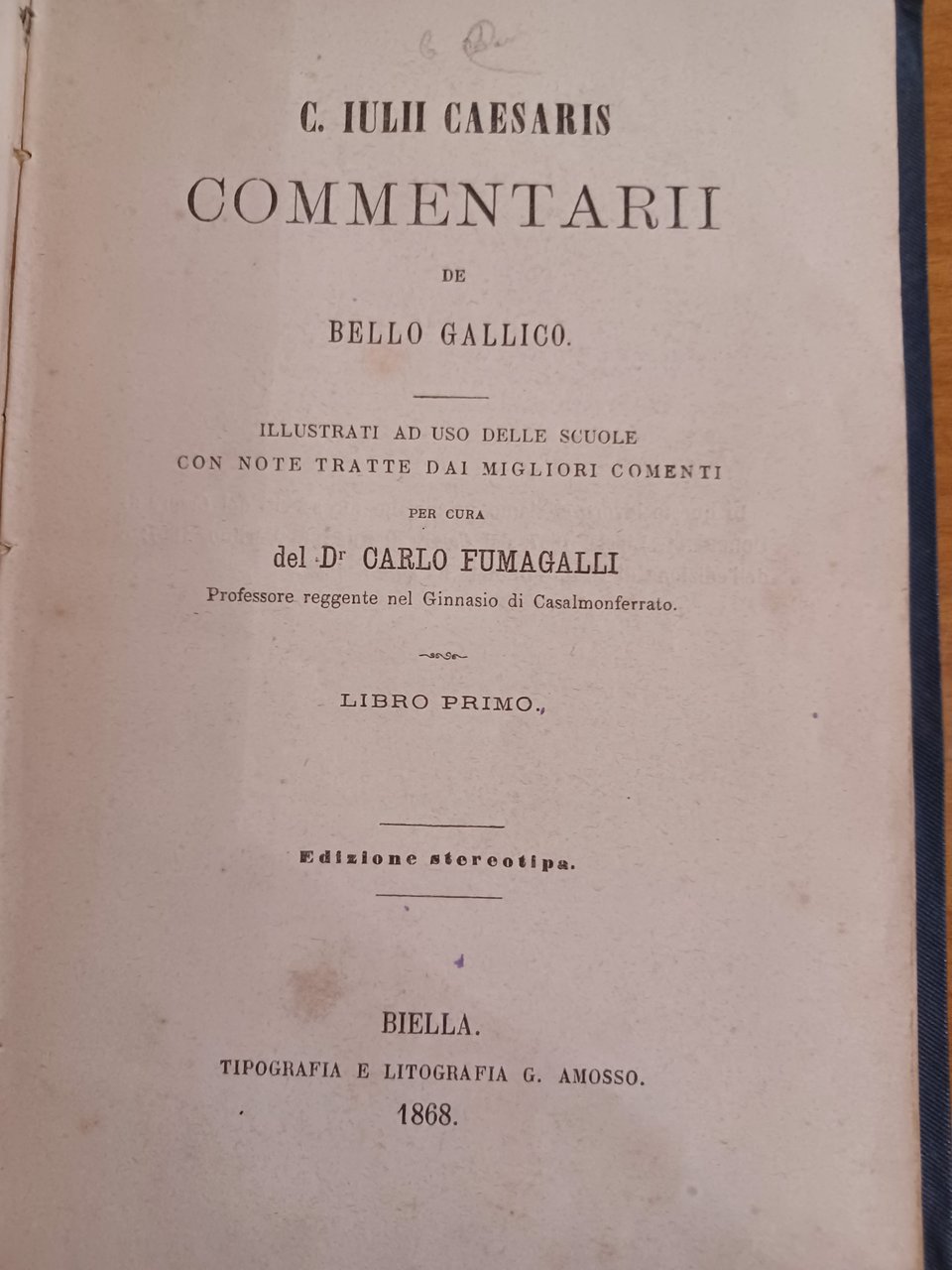 Libro primo, edizione stereotipa. "Illustrati ad suo delle scuole con note tratte dai migliori comenti per cura del Dr. Carlo Fumagalli". Presenta una firma.
