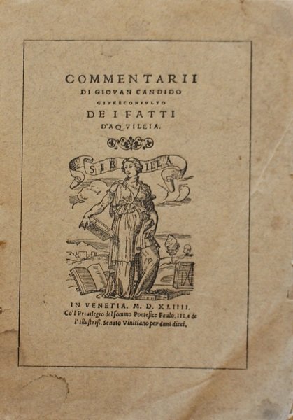 Pradamano, 1926. In 8¡, pagine 190. Brossura editoriale ill.con titoli al piatto anteriore e al dorso.Interno fresco, ordinari segni di uso e di tempo, al dorso e al piatto anteriore, in parte strappato, ma non mancante, pagine allentate.Trattasi di ristampa della traduzione dei Commentarii sulla storia di Aquileia di Giovanni Candido fatta da Michele Tramezino e stampata a Venezia nel 1544.