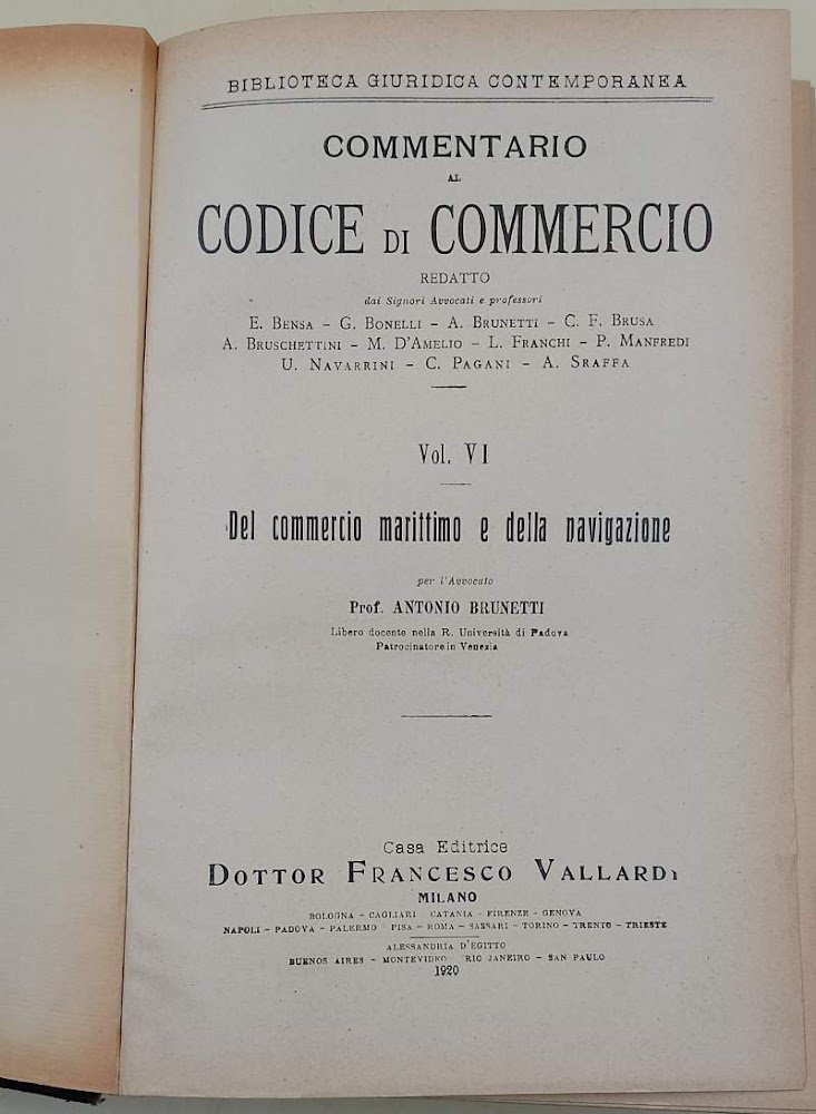 COMMENTARIO AL CODICE DI COMMERCIO-VOL. VI- DEL COMMERCIO MARITTIMO E DELLA NAVIGAZIONE(1920)