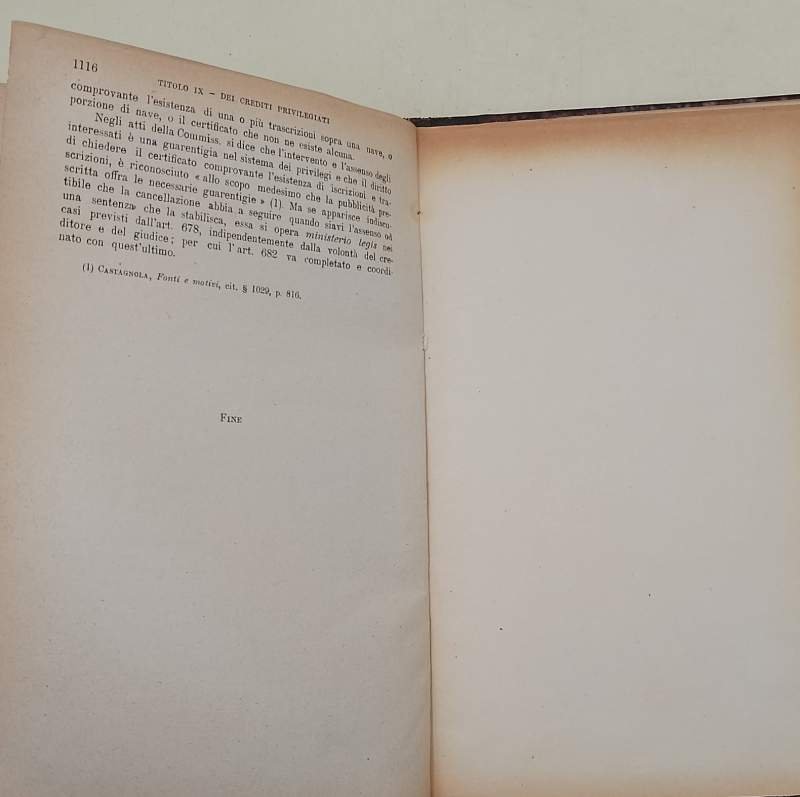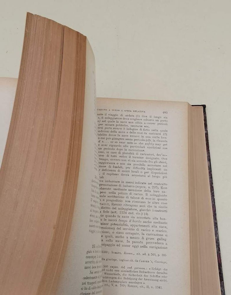 In 8' grande, mz. pelle.piatti marm., pp. 1116, dorso fortemente danneggiato, parti staccate. legatura comunque salda, interno in buono stato, ordinari segni del tempo ***Due to bureaucratic reasons, books dated over 70 years old cannot be immediately exported, please contact us before placing the order.***