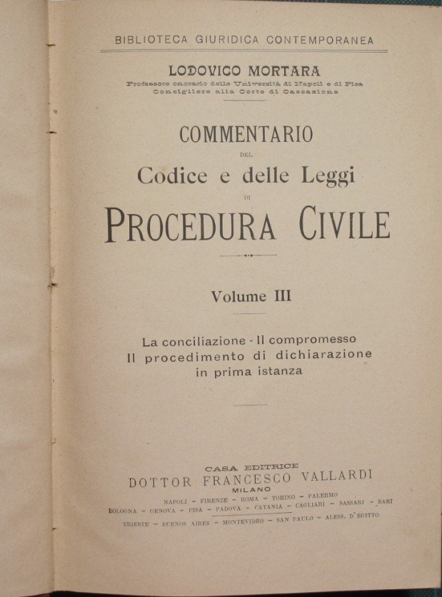 Commentario del Codice e delle Leggi di Procedura Civile. Vol. III