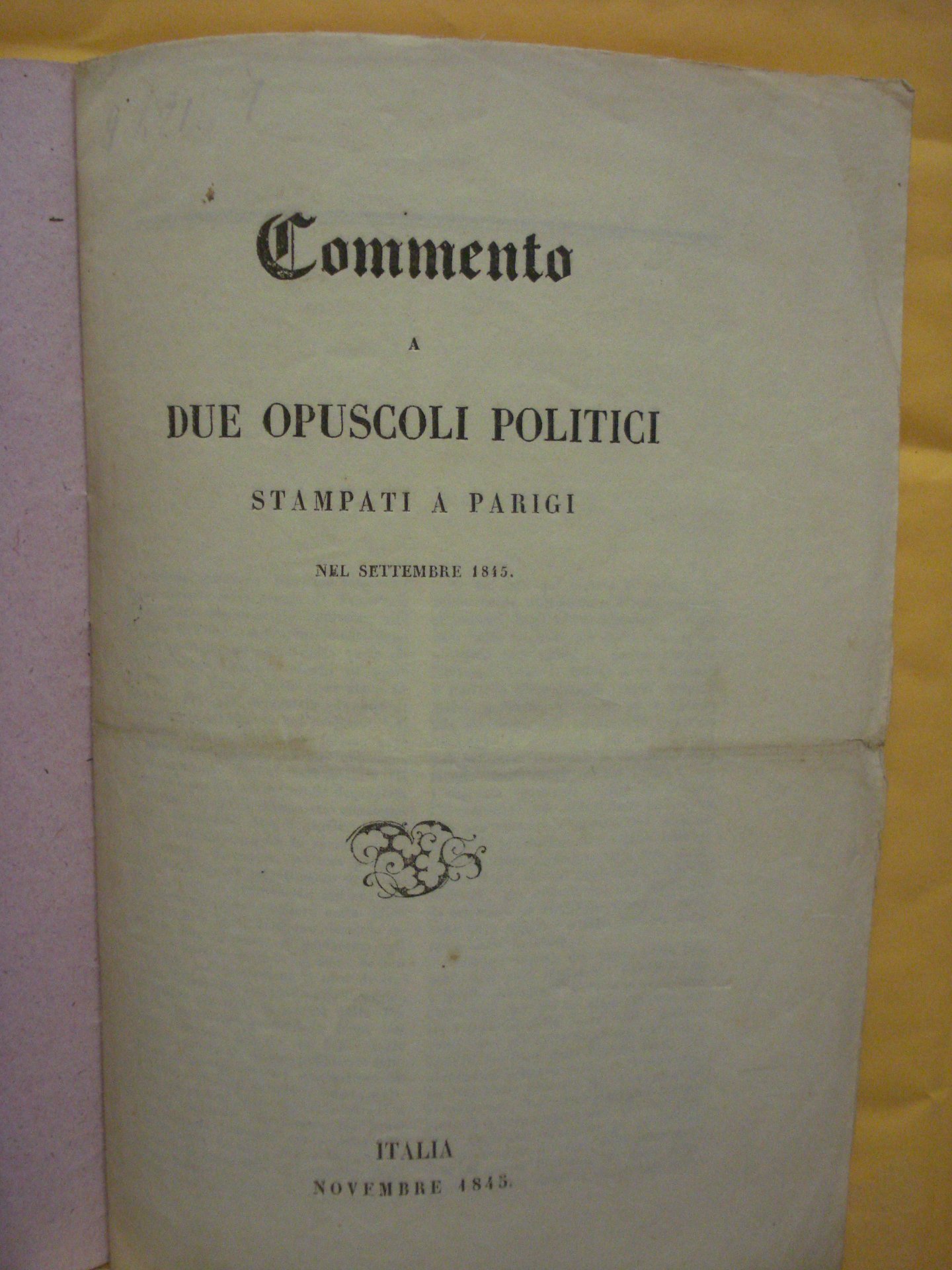 COMMENTO A DUE OPUSCOLI POLITICI STAMPATI A PARIGI NEL SETTEMBRE 1845.