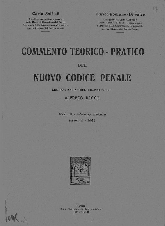 Commento teorico-pratico del nuovo Codice Penale, con prefazione del guardasigilli Alfredo Rocco. (Vol. I, art.1-84)-(Vol.II, art. 85-240) .