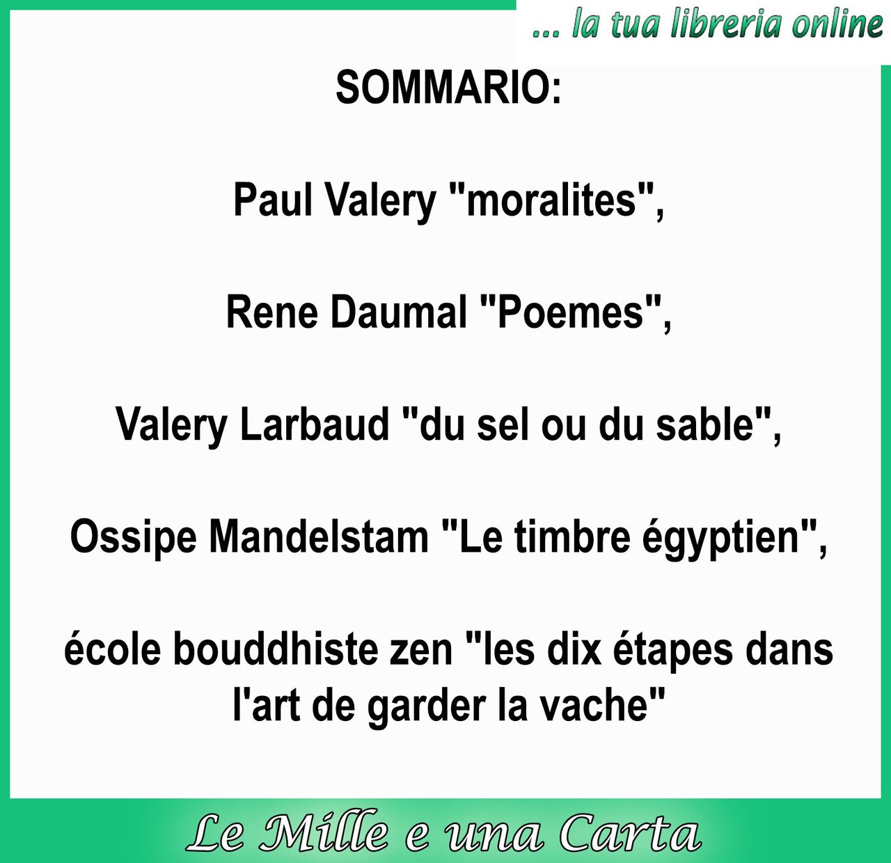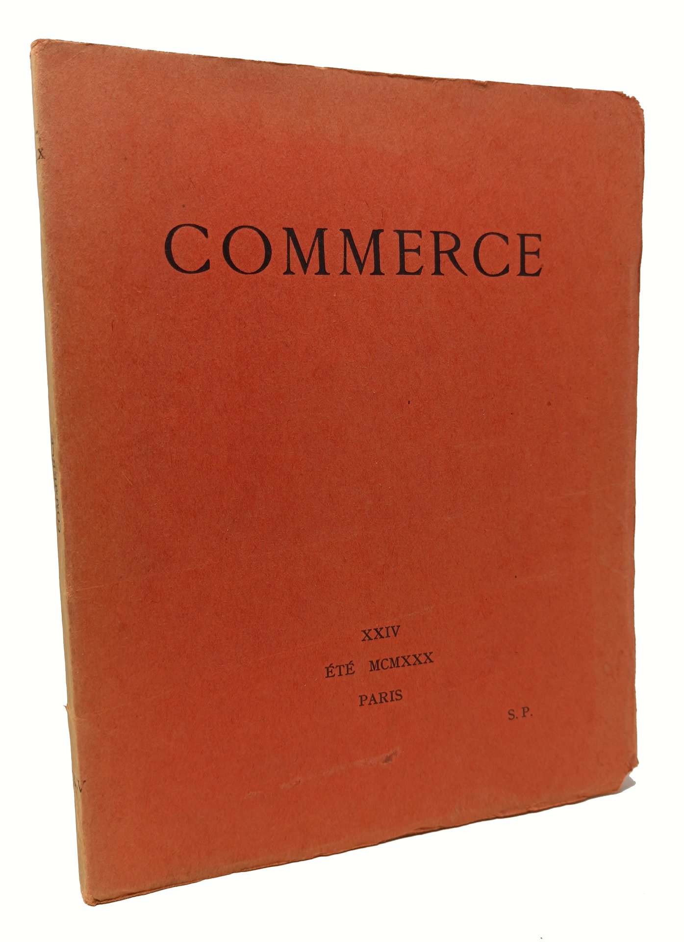 'COMMERCE / Cahiers trimestriels publiés par les soins de Paul Valer, Leon-Paul Fargue, Valer Larbaud' cahier XXIV été 1930. Redaction et administration chez L. Giraud-Badin, Paris. Lingua del testo: francese. Formato: 19 x 24 cm circa. Pagine: 194 + [2]. Stato di conservazione: minuscole mancanze sugli angoli del piatto anteriore e del primo foglio, qualche piccola macchiolina gialla ma, nel complesso, un buon esemplare. Interno ancora completamente intonso. Brossura. Sommaire: Paul Valery 'moralites', Rene Daumal 'Poemes', Valery Larbaud 'du sel ou du sable', Ossipe Mandelstam 'Le timbre égyptien' (traduit du russe par D. S. Mirsky et Georges Limbour), école bouddhiste zen 'les dix étapes dans l'art de garder la vache'.Prestigiosa rivista letteraria, pubblicata in tiratura limitata, sulla quale scrissero alcuni tra i più importanti autori del periodo tra le due guerre. Su carta pregiata. Sulla copertina anteriore è stampata l'indicazione 'S. P.' che presumibilmente individua il tipo di carta pregiata utilizzata per stampare questo esemplare (anche se sulla pagina in cui è presente la giustificazione della tiratura non è indicato il numero di esemplare).