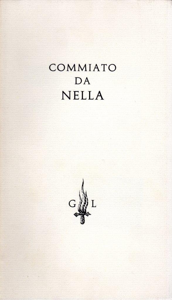 Commiato da Nella, senza data, formato 13 x 22,5.<BR>Copertina morbida di colore bianco con titoli in nero al piatto anteriore. All'interno presenti alcune tavole fotografiche in b/n. <BR>Ottime condizioni.