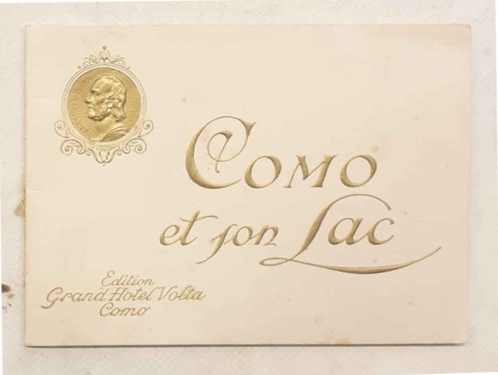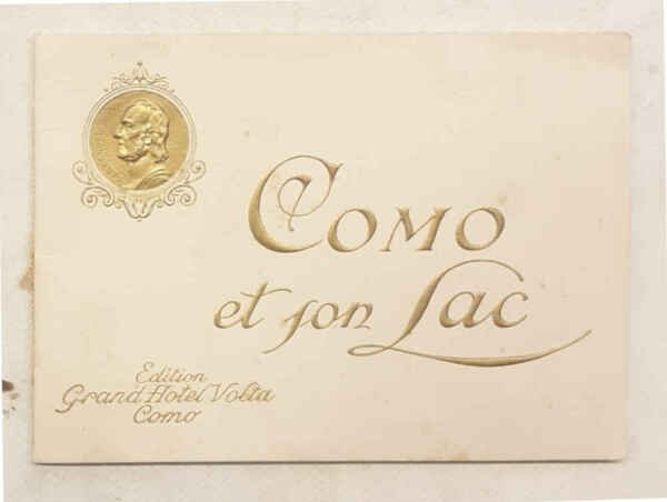 In 16° ad album (cm. 12 x 16,5); pagg. (48); con panorama fotograf. doppio alle pagine centrali, 2 cartine n.t., numerose illustraz. fotograf. quasi tutte a piena pagina, fregi tipografici e tutte le pagine con riquadro in oro; leggera carton. origin. con titoli e medaglia di A. Volta in oro e in rilievo; nastro al dorso. VG+. ** Ottimo esemplare di un elegante piccolo album, ben stampato dalle Arti Grafiche Pietro Cairoli di Como e con foto Brunner & C. Como. Interamente in francese.