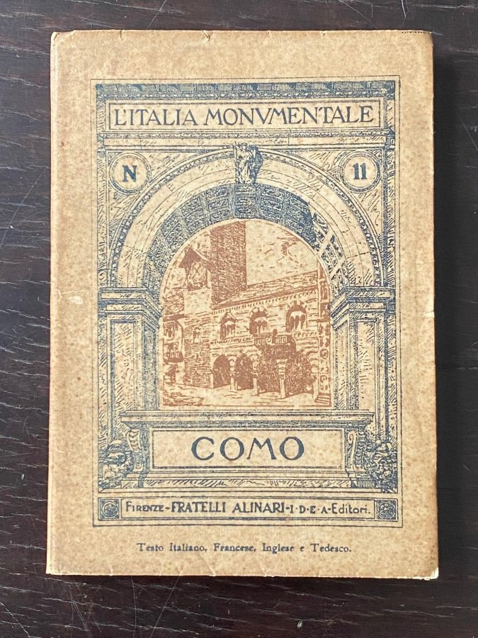 <font face="Arial, Verdana"><font size="2">In-16° (cm. 14,4), brossura editoriale a stampa con risvolti, titolo in nero al dorso e al piatto anteriore entro eleganti cornici architettoniche che inquadrano un piccola veduta sul Broletto di Como in xilografia (lievi fioriture, minime tracce d'uso); pp. 53 [1b], 4 [2] in ottimo stato (leggera brunitura uniforme); con 64 tavole fotografiche in nero su carta patinata e alcune illustrazioni nel testo. Grazioso volumetto su Como scritto da don Monti. Opera facente parte de «L'Italia Monumentale», collezione di monografie sotto il patronato del Touring Club Italiano e della </font></font><i style="font-family: Arial, Verdana; font-size: 10pt; font-variant-caps: normal; font-weight: normal;">Dante Alighieri</i><font face="Arial, Verdana" size="2"><font size="2">, vol. 11. </font></font><font face="Arial, Verdana" size="2" style="font-family: Arial, Verdana; font-size: 10pt; font-style: normal; font-variant-caps: normal; font-weight: normal;">Con testo in italiano, francese, inglese e tedesco. Esemplare molto buono. (SJ3)</font>