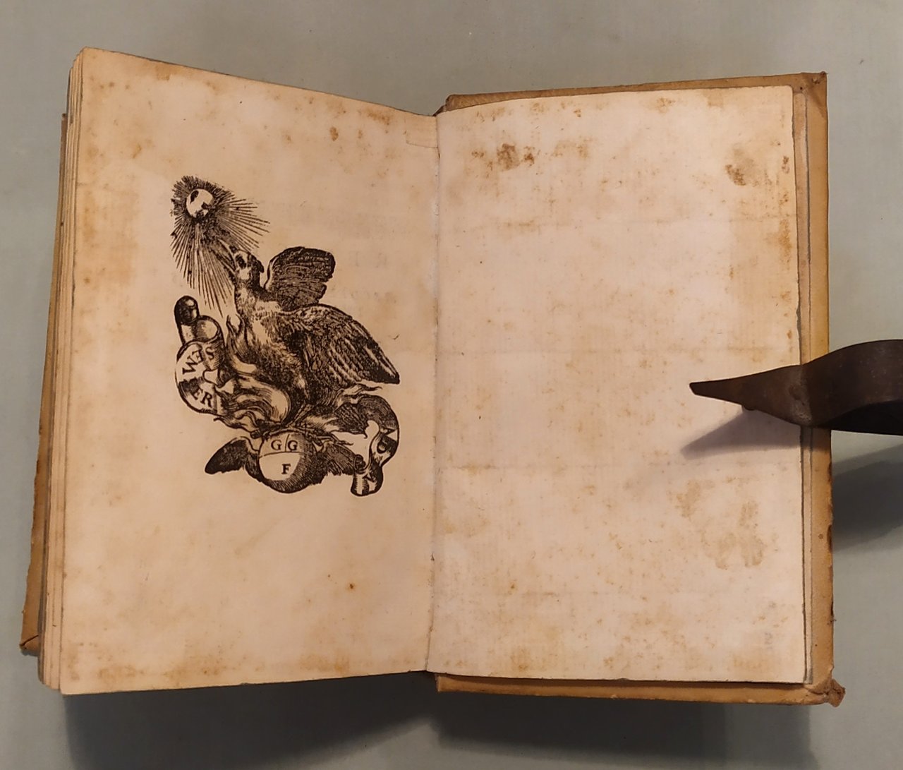 - Pergamena coeva, tassello al dorso con titolo e fregi in oro.