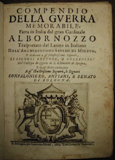 Compendio della guerra memorabile, fatta in Italia dal gran Cardinale Albornozzo trasportata dal latino in italiano dall’Archidiacono Savaro di Mileto
