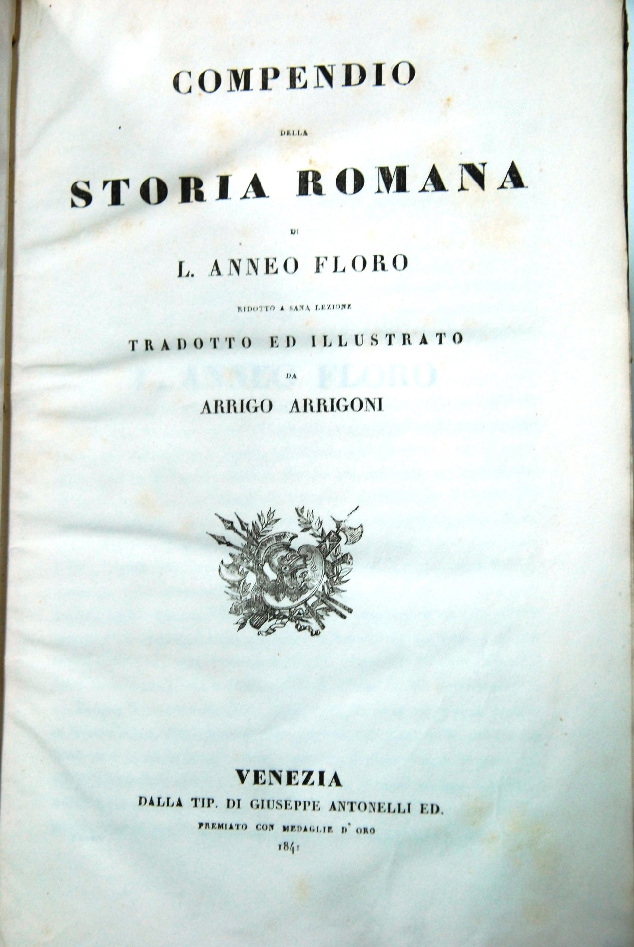 Anneo Floro Compendio della storia Romana tradotto e illustrato da Arrigo Arrigoni. Venezia Antonelli 1841 Ottime Rilegato .