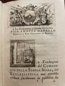 Solo tomo primo (su due): Storia sacra. Con una tavola più volte ripiegata: Tavola de' re che nel tempo della cattività hanno regnato. Bella vignetta tipografica incisa al frontespizio, bellissimi testatina e capolettera incisi alla prima pagina. Testatine, finalini e altri capilettera incisi nel testo. Esemplare molto ben conservato. Pagg. 12 nn, 288. Piena pergamena coeva con tit. al tassello al dorso. Mis mm 185x125