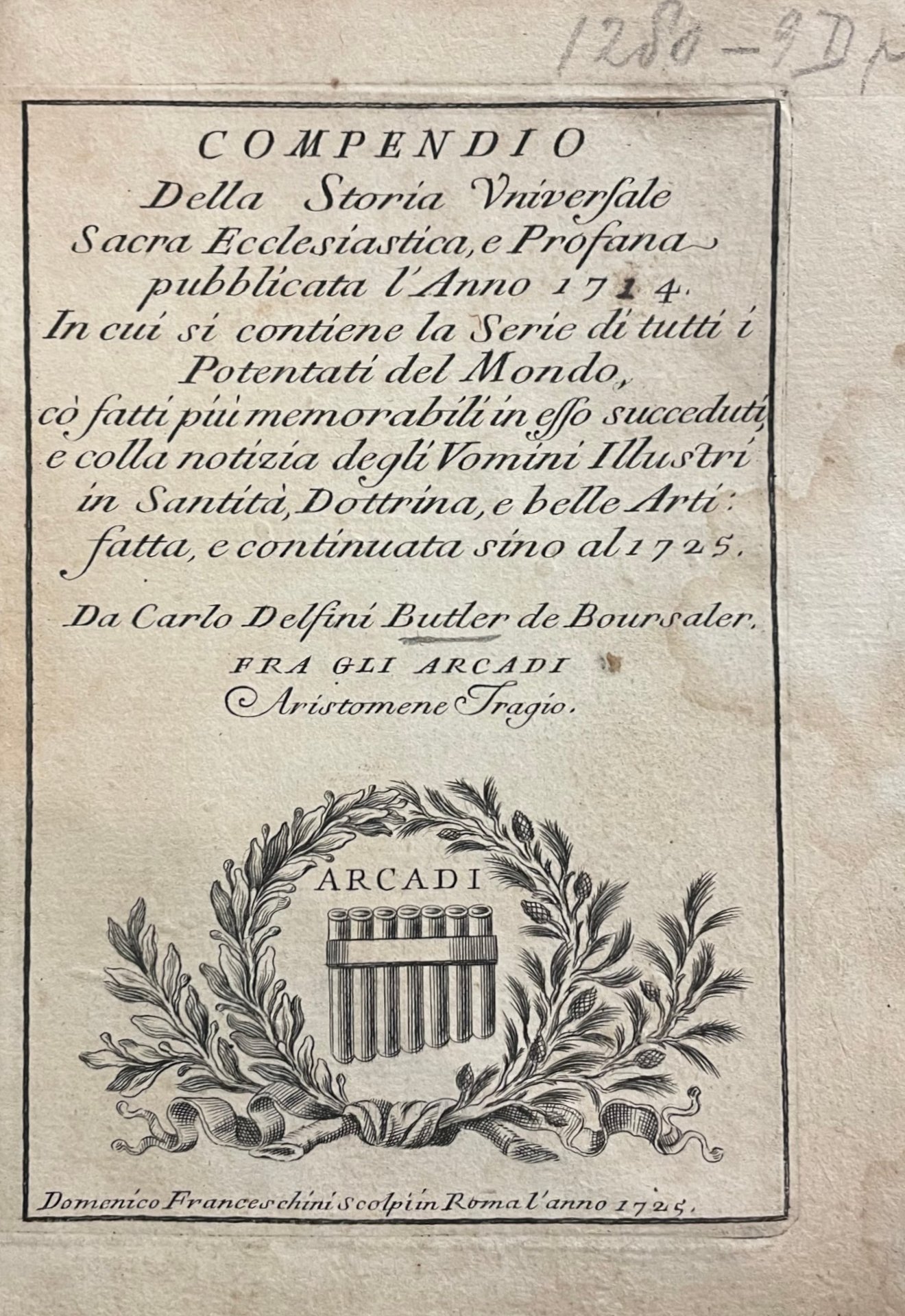 - ,DELFINI BUTLER DE BOURSALER CARLO (tra gli Arcadi Aristomene
