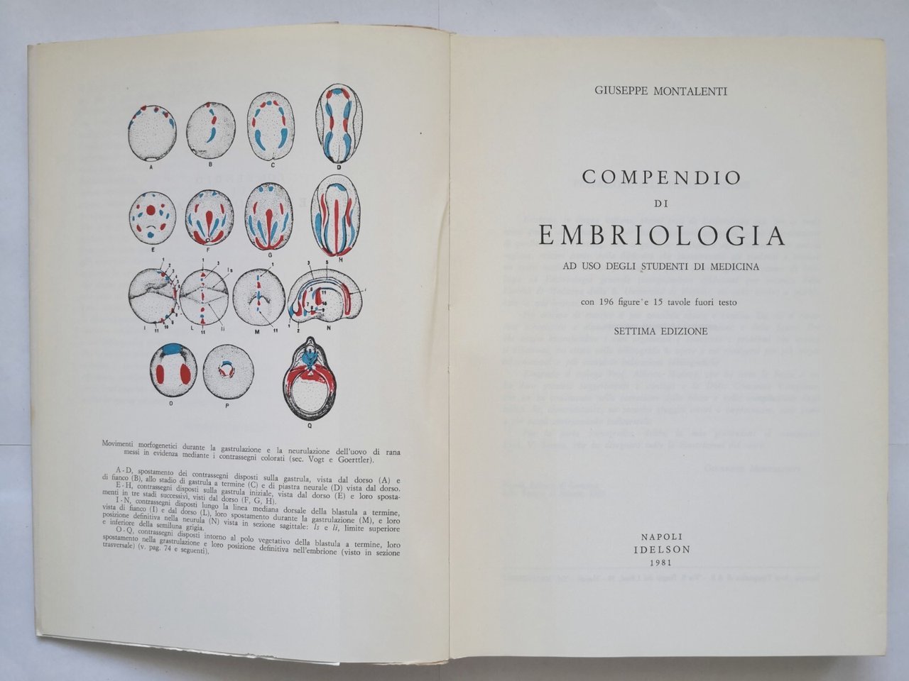 COMPENDIO DI EMBRIOLOGIA di Giuseppe Montalenti 1981 Idelson libro