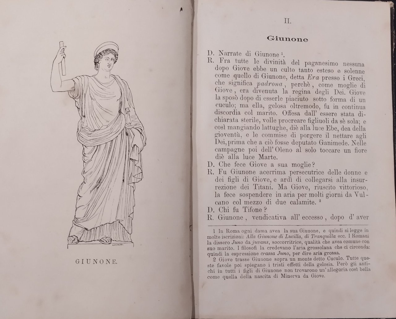 Napoli, Antonio Morani Editore, 1878. VII, 118 pagine, illustrazioni a tutta pagina nel testo. Copertina coeva in mezza tela. Stato di conservazione: buono (pagine ingiallite, firma di appartenenza, copertina un po' sciupata) Libro antico scolastico miti