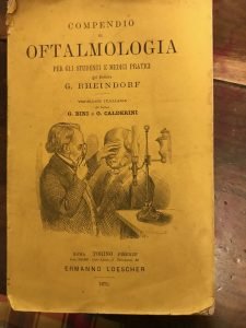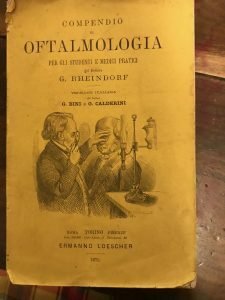 Versione con note dei dottori G. Bini e G. Calderini preceduta da elementi di anatomia, fisiologia, diagnostica e terapeutica dell'appartao della visione di G. Calderini. Con figure intercalate nel testo ed una tavola litgrafata con la scala tipografica di Snellen. Piccoli strappetti all'ang. sup. sx del piatto e tagli al dorso, qualche piccola fioritura, nel complesso buon esemplare. Pagg. XII, 323. Brossura edit. ill. Mis mm 200x130