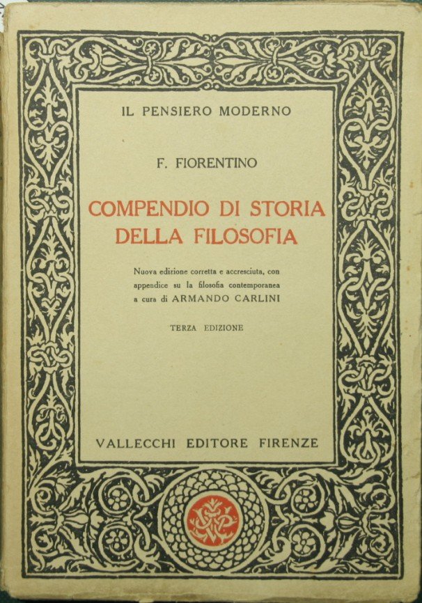 Nuova edizione corretta e accresciuta, con appendice su la filosofia contemporanea a cura di Armando Carlini. Terza edizione - Collana Il pensiero moderno. A cura di E. Codignola. N. 8 - in 16° - pp.253 - Brossura editoriale - Strappetti con e senza mancanze al dorso, firma a penna al frontespizio