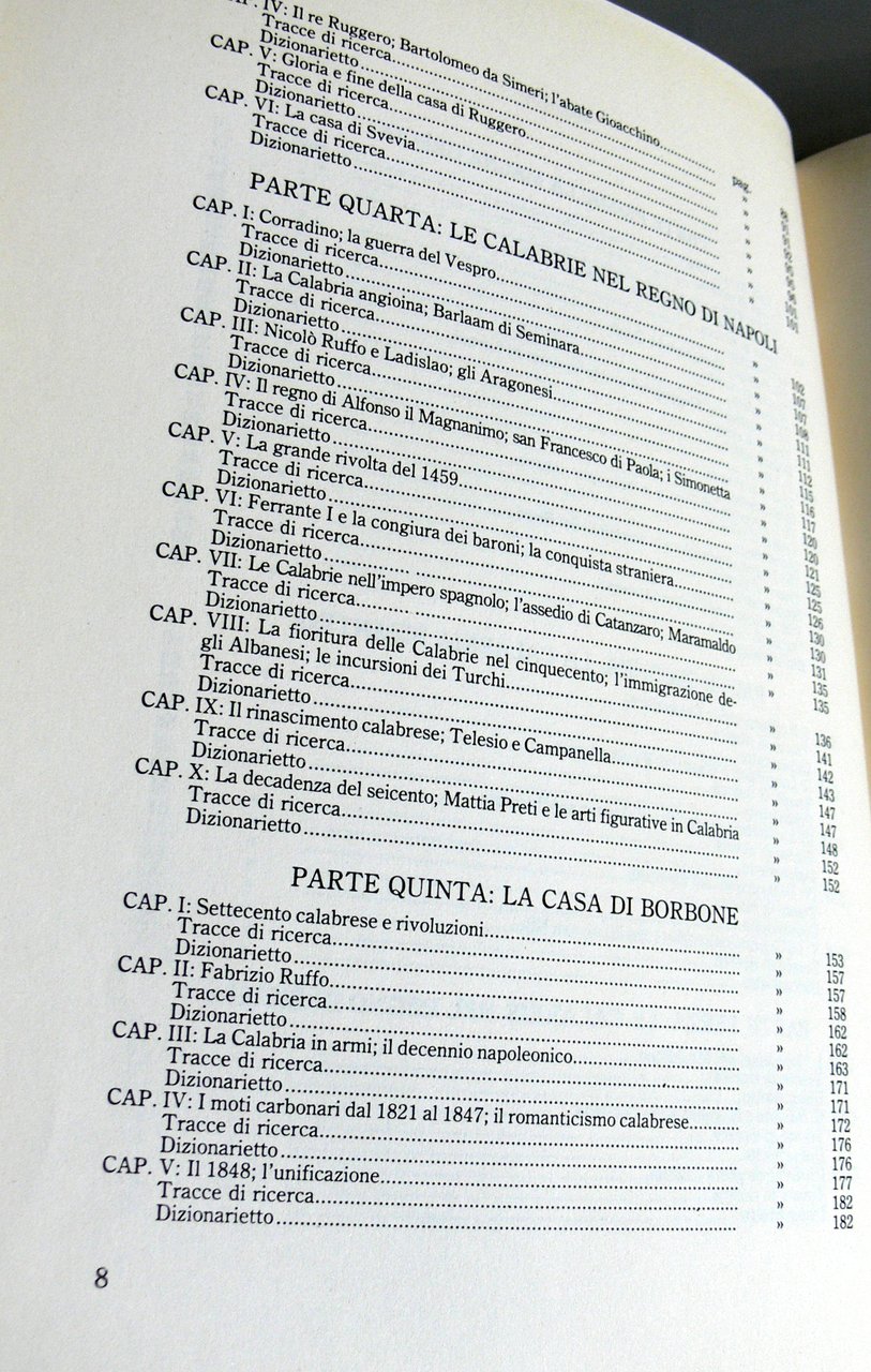 Soggetti: Storia Locale, Genealogia Studi culturali storici Calabria, Magna Grecia, Siracusa, Colonie, Pirro, Bruzi, Lucani, Impero Romano, Cartagine, Calabria Bizantina, Cristianesimo, Cassiodoro, Saraceni, Regno di Sicilia, Ruggero, Roberto, Svevi Regno di Napoli, Angioini, Vespro, Seminara Barlaam, Aragonesi, Ruffo, Ladislao, Francesco Di Paola, 1459, Assedio, Catanzaro, Umanesimo, Rinascimento, Moti Carbonari, Guerre, Rivoluzione, Sibari, Iconoclasmo Iconoclastia Dizionarietto San Nilo Zaccaria, Meridionalismo Collezionismo Libri rari fuori catalogo Storia sociale Calabresi Alfonso Amantea Angioini Antonio Centelles Arabi armi assali baroni Belcastro Bisignano Bizantini Bruzi Carlo Cartaginesi Cassiodoro Catanzaro Caulonia Centelles ceti Chiesa città colonie conquista conte Cosenza Crotone cultura d'Angiò demaniali Dionisio dominio dotti duca Elleni Enotri erede eventi Fabrizio Ruffo Federico Ferdinando Ferrante feudale feudatari feudi figlio filosofia flotta Francesi Gerace Gioacchino Giovanni gloria governo guerra Guglielmo imperiale Ionio Italia impero Italia latino lingua Locresi Locri Longobardi Lucani Luigi Magna Grecia mare Mediterraneo meridionale Mileto Monteleone Mori Napoletani Napoli nemico Nicastro Nicolò Ruffo nobili nome Normanni Note Pace Papa Pitagora poco politica popolo potere Puglia reame Reggini Reggio regione regno Reynier ribelli rivolta Romani Ruggero Santa Severina sbarco Sibari Sicilia Siciliani signore Sila Spagnoli Squillace storia Taranto terra Tirreno tradizione traffici Tropea uomini Local History Genealogy Historical cultural studies Syracuse Colonies Pyrrhus Lucanians Roman Empire Carthage Byzantine Christianity Cassiodorus Saracens Kingdom of Sicily Swabians Kingdom of Naples Angevins Vespers Aragonese Ladislaus Humanism Renaissance uprisings Wars Revolution Sybaris Iconoclasm Dictionary Southernism Collectibles Rare books out of print Social history Angevins Centelles Arabs weapons attacks barons Byzantines Charles Carthaginians Cassiodorus Centelles classes Church city colonies conquest count culture Anjou state property Dionysius dominion learned duke Hellenes events feudal lords fiefs son philosophy fleet French Gerace glory government war William imperial Ionian Italy empire Latin language Locrians Lucanians southern Mediterranean sea Moors Neapolitans Naples enemy nobles name Normans Notes Peace Pope Pythagoras little politics people power realm kingdom Reynier rebels revolt Romans landing Sybaris Sicily Sicilians lord Syracuse Spaniards Squillace history Taranto land Tyrrhenian tradition trades men