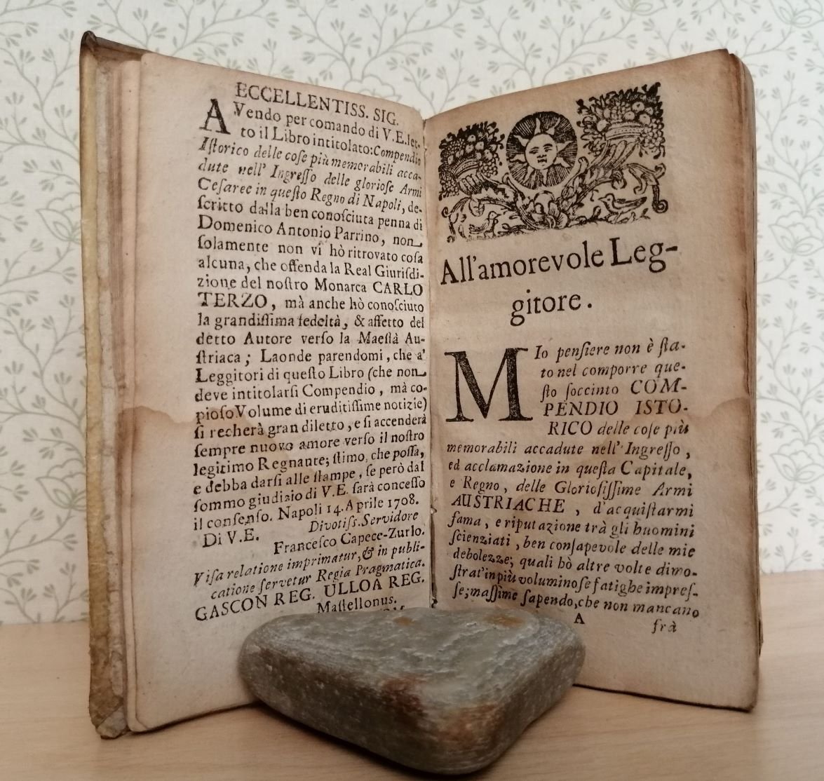 COMPENDIO ISTORICO o siano MEMORIE DELLE NOTIZIE PI VERE, E COSE PI NOTABILI E DEGNE A SAPERSI accadute nella felicis. entrata delle sempre gloriose truppe cesaree nel regno ed in questa Citt di Napoli dal principio della loro marcia presso Bologna