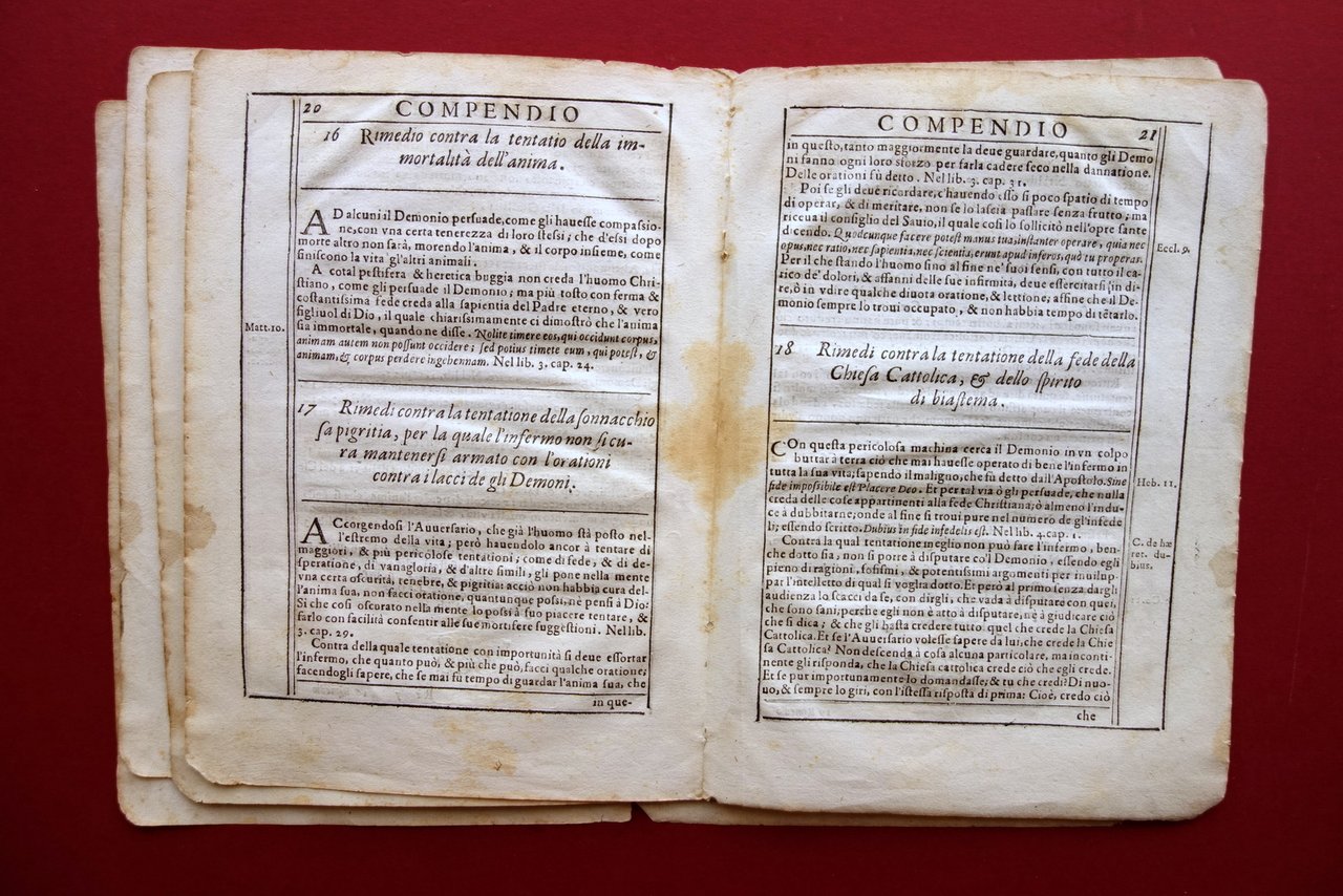 Compendio Rimedi contro Tentazioni dei Demoni Frammento Libro Antico '600