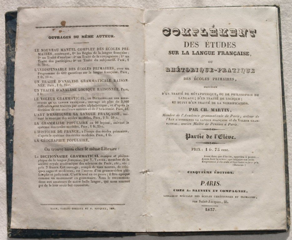COMPLEMENT DES ETUDES SUR LA LANGUE FRANCAISE OU RHETORIQUE PRATIQUE DES ECOLES PRIMAIRES