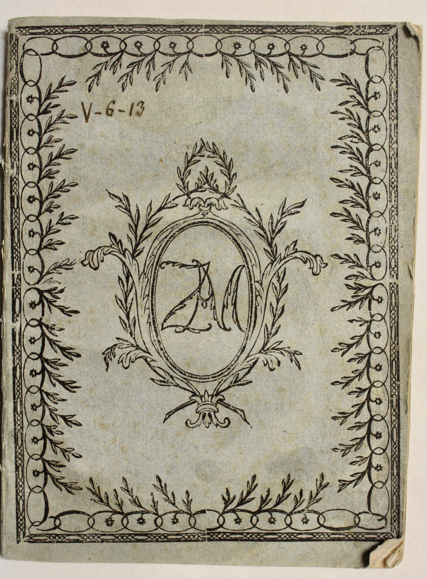 In 4°; 10 pp., 64 pp., 2 cc. nn.; cartone muto coevo con splendida decorazione manoscritta ai piatti composta da elegante bordura con al centro le iniziali del Mocenigo entro ovale. Contiene sonetti di vari personaggi veronesi. Molto bello, un po' ondulato, perfettamente conservato. <BR>
