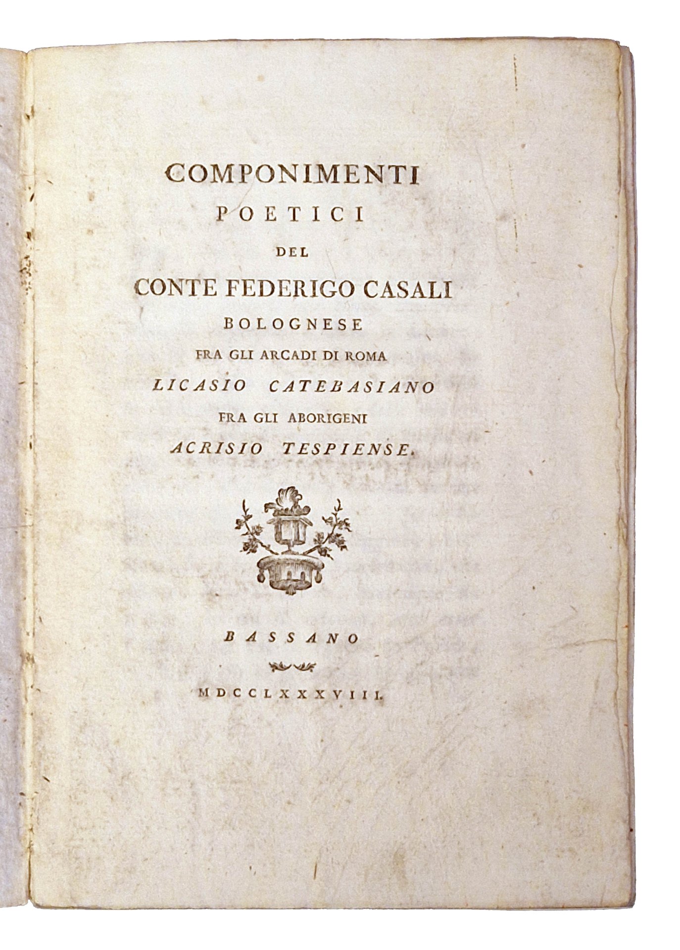Componimenti poetici del Conte Federigo Casali bolognese fra gli arcadi di Roma Licasio Catebasiano fra gli aborigeni Acrisio Tespiense.