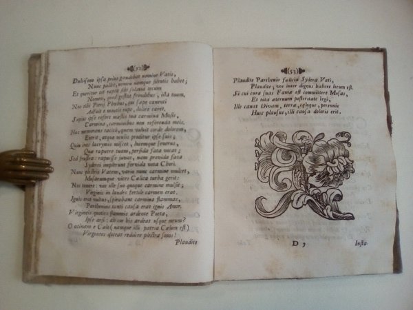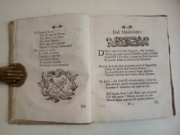 Cm. 20 x 15,5; 1 c. n.n., pp. 172 con un incsione in rame all'antiporta (ritratto di Tommaso Ravasini) e molti graziosi testatine e finalini xilografici nel testo; legatura povera in cartonato coevo con tagli spruzzati.<BR>CONDIZIONI BUONE: carta forte e bianca con solo un piccolo aloncino all'angolo inferiore destro.