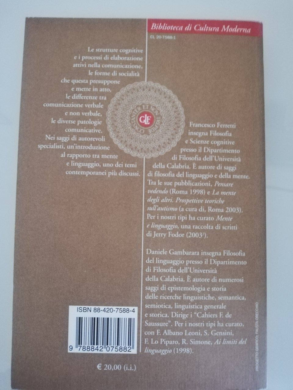 Comunicazione e scienza cognitiva, E. Ferretti D. Gambarara, 2005 Laterza, Nuovo