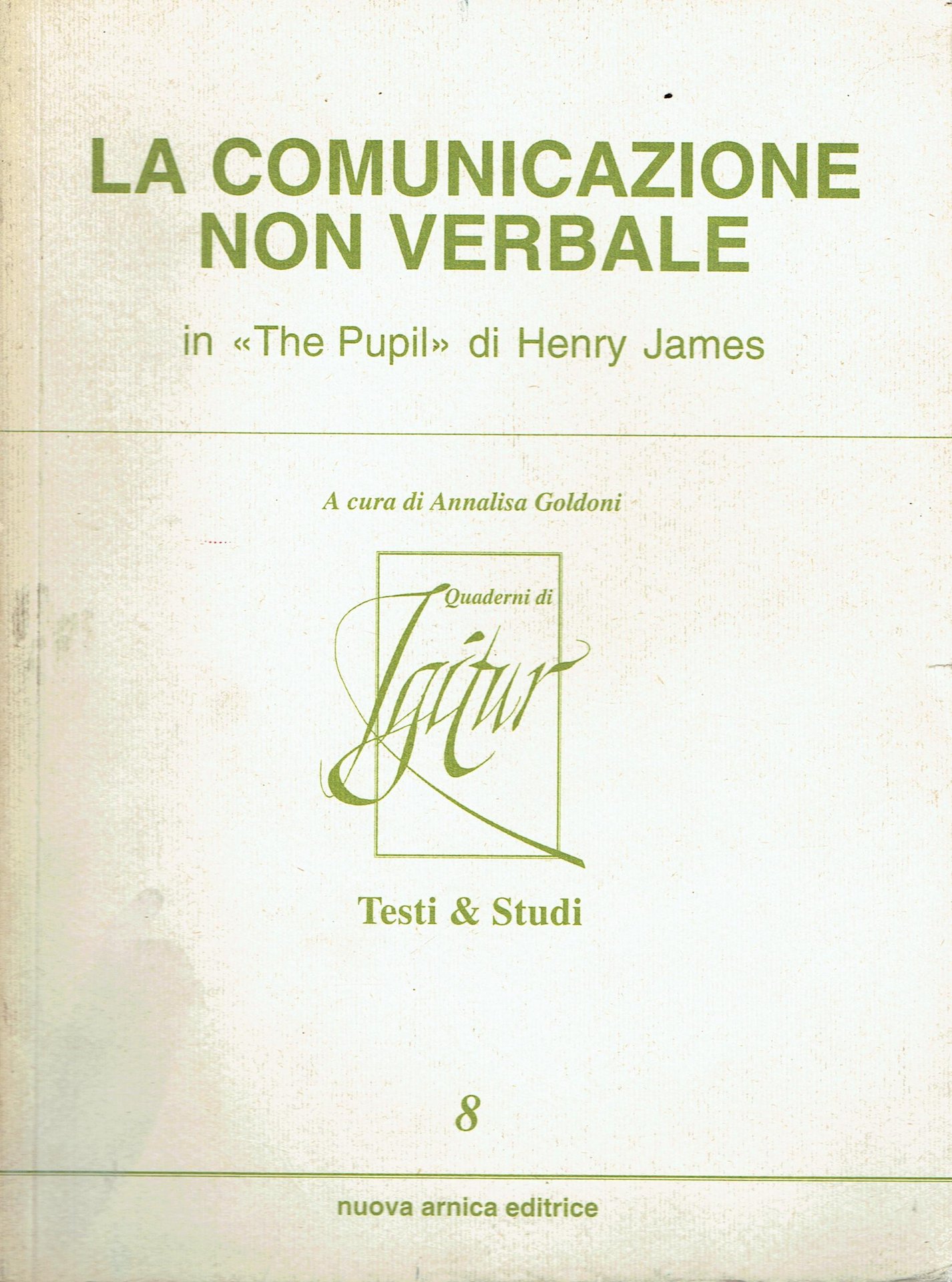 A cura di Annalisa Goldoni, 189 pp. brossura Mediocre (Poor) Ingiallimento della copertina con macchie di polvere, alcune sottolineature, evidenziature e segni a penna e a matita, leggibilità non compromessa.