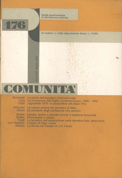 Rivista quadrimestrale di informazione culturale, anno XXX, scritti di Bonanate, Tana, Fejto, Fetscher, Alland, Moers, Bakan, Traldi, Azzi Visentini, Bedoni. 35 illustrazioni in bn. Piccole macchie in copertina.