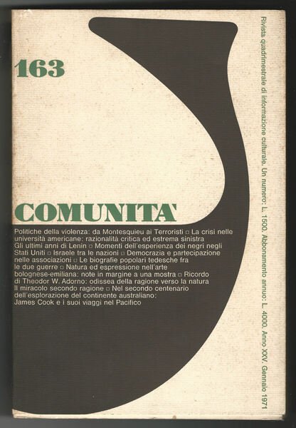 COMUNITÀ. Rivista Quadrimestrale di Informazione Culturale Fondata da Adriano Olivetti.