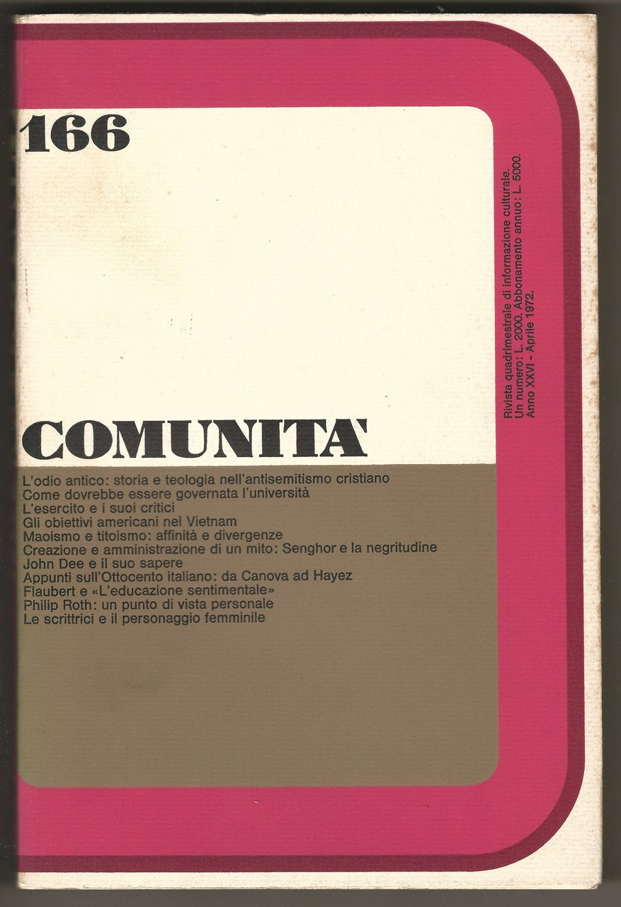 COMUNITÀ. Rivista Quadrimestrale di Informazione Culturale Fondata da Adriano Olivetti.