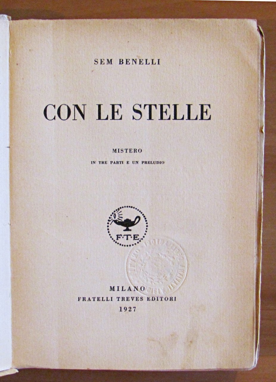 Ed. Fratelli Treves - Milano, 1927. Brossura editoriale con barbe ai margini esterni delle copertine e mancanze alle cuffie del dorso. 14x19; pp.218. BUONISSIMO STATO , Molto buono (Very Good)
