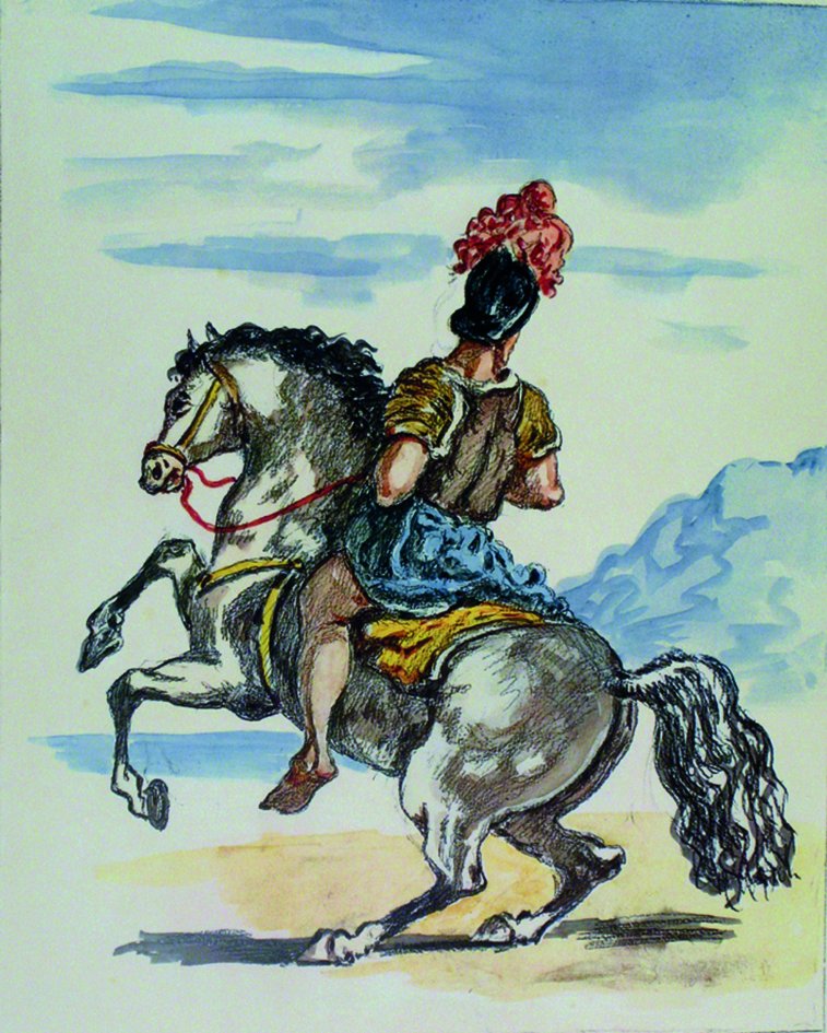 In folio, fascicolo con il testo di pp. 20 su carta pesante a mano, una tav. a colori con la riproduz. litografica di un disegno del Maestro dal titolo "Il cavaliere solitario" con firma autografa a matita, seguono 40 splendide tav. a colori ognuna in passe-partout editoriale. Cartella m.pella edit. con fac-simile di firma al piatto. Bella e lussuosa ediz. tirata a complessivi 1526 esemplari numerati con testo in diverse lingue; il ns. esemplare è il n° 37/125 con testo in tedesco.