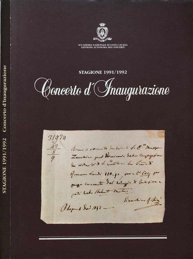 Accademia Nazionale di Santa Cecilia, Gestione Autonoma dei Concerti. Presidente Bruno Cagli. Orchestra e coro dell'Accademia Nazionale di Santa Cecilia, Maestro del coro Norbert Balatsch. Illustrazioni presenti nel volume. Il volume si presenta in ottimo stato di conservazione. Il dorso e le copertine sono integri. le pagine interne sono perfettamente bianche e fruibili. I tagli puliti e regolari. La cerniera è ben salda. La sovracoperta che riveste il volume è in ottime condizioni. Numero pagine 105