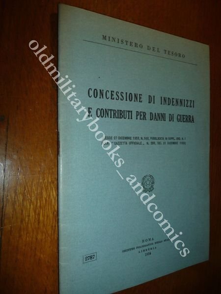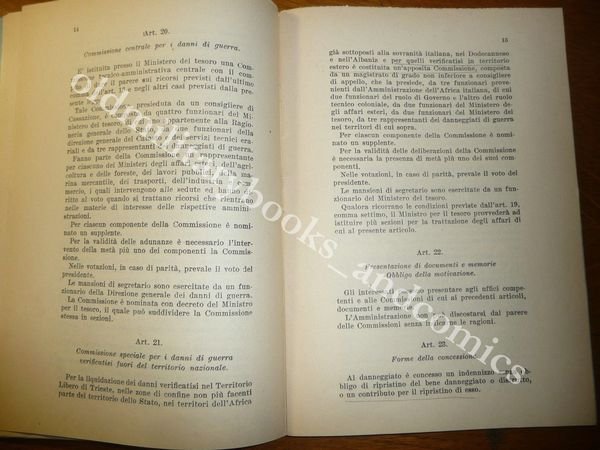 DESCRIZIONE: Istituto Poligrafico dello Stato Roma 1954 br. ed. pp. 39 in 8°. Contiene: Indennizzi per attivita' agricole, per la ricostruzione di abitazioni; di fabbricati in zone sismiche; Per i cittadini italiani in Trieste e Albania. CONDIZIONI: Ottime/Perfette alcune sottolineature a matita. PESO / WEIGHT: 44 gr. without package