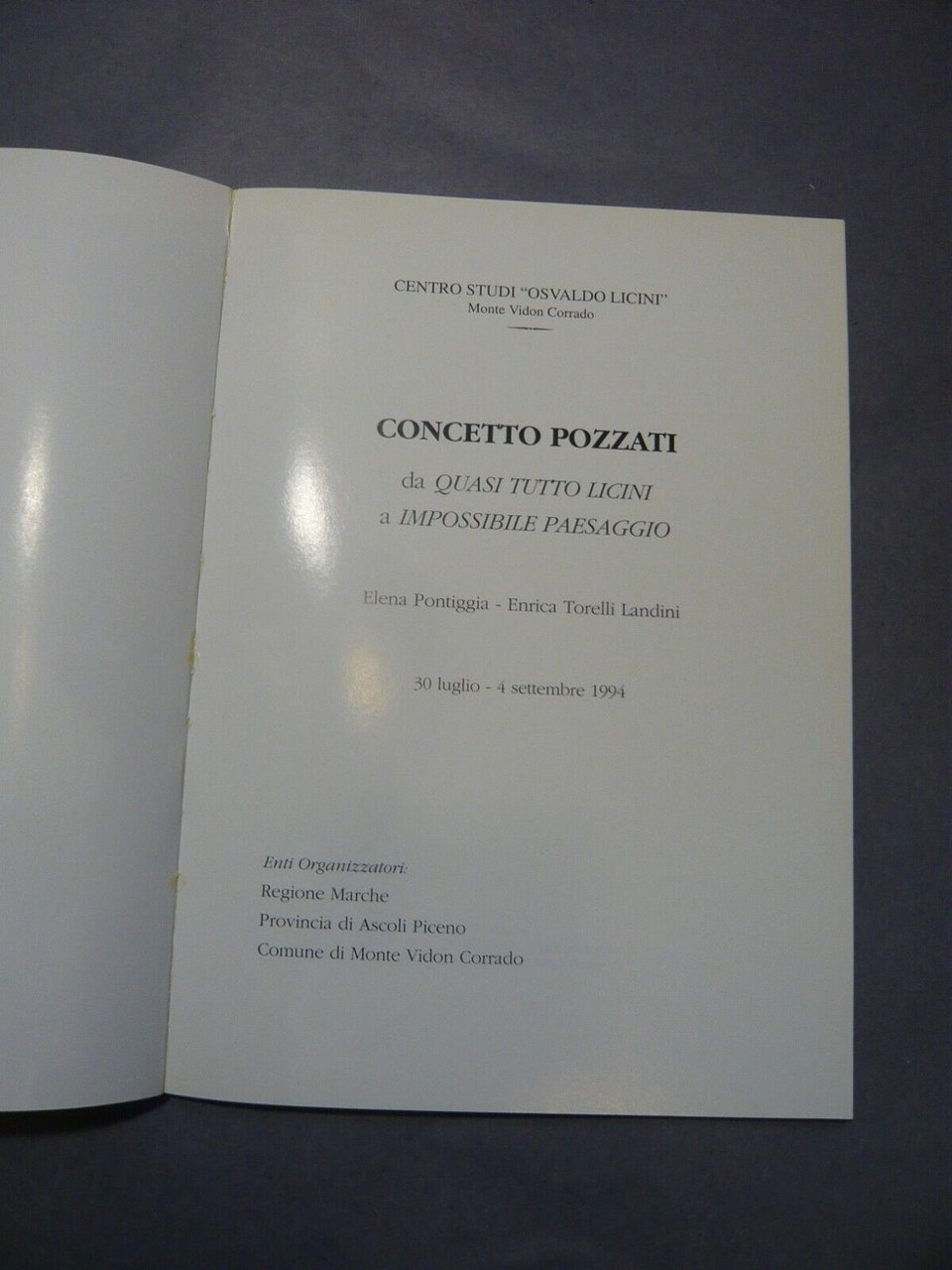 CONCETTO POZZATI. DA QUASI TUTTO LICINI A IMPOSSIBILE PAESAGGIO, 1994[catalogo