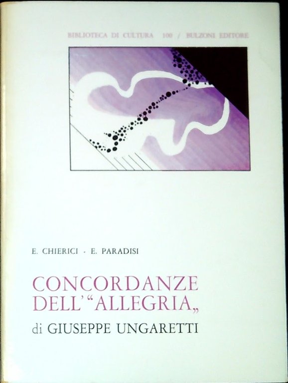 Chierici, Enrico; Paradisi, E. Concordanze dell'Allegria di Giuseppe Ungaretti. Roma, Bulzoni 1977, 175 p. ; 21 cm. (64040)