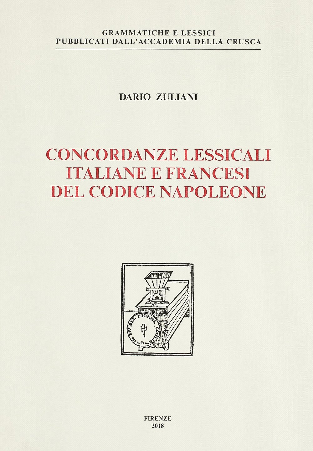Nel gennaio 1806 il re d'Italia e imperatore dei Francesi, Napoleone Bonaparte, approvò la traduzione italiana del Codice civile francese, che nello stesso anno entrò in vigore nel Regno d'Italia. Il Codice civile napoleonico, noto come «Codice Napoleone», segnò in gran parte dell'Europa la nascita della codificazione moderna. Un solo testo di 2.281 articoli, stampabile anche in piccolo formato, conteneva il diritto civile, eliminando un sistema legislativo stratificato nei secoli. Le Concordanze del «Codice», frutto di molti anni di lavoro, offrono per la prima volta a giuristi, linguisti e storici un accurato strumento di studio sull'influenza che il testo del «Codice» ha avuto sulla lingua giuridica italiana. Il confronto diretto di ogni parola con l'originale francese facilita la conoscenza del «Codice», consente di approfondirne l'interpretazione, la tecnica di traduzione, le novità lessicali, l'innovativa tecnica linguistica che usa frasi brevi, definizioni, formule, esempi. La pubblicazione delle «Concordanze» è anche un'occasione per riaccostare il nome di Napoleone a quello dell'Accademia della Crusca, ristabilita in forma indipendente, nel 1811, proprio da Napoleone.