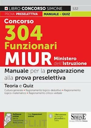 CONCORSO 304 FUNZIONARI MIUR. MINISTERO DELL’ISTRUZIONE. MANUALE PER LA PREPARAZIONE ALLA PROVA PRESELETTIVA. TEORIA E QUIZ. CON SOFTWARE DI SIMULAZIONE CD. 532 M+Q
