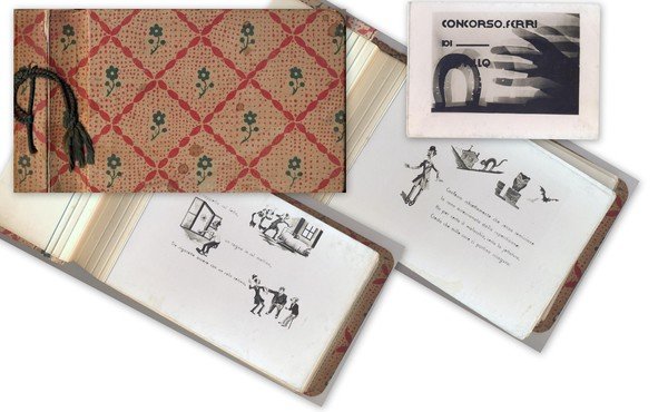 In 24° oblungo, rilegatura cart. coeva (minime gore), pp. 34, con ill. b.n. n.t.; contiene una simpatica storiella in rima illustrata in bianco e nero su i ferri da cavallo La Conveniente; molto bello e raro; buon es.