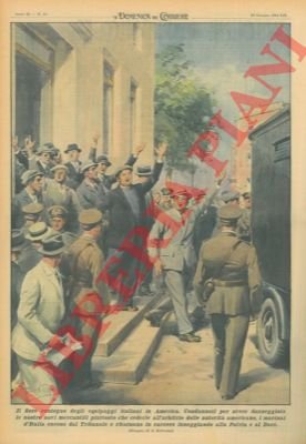 Condannati per avere danneggiato le nostre navi mercantili piuttosto che cederle all'arbitrio delle autorità americane, i marinai d'Italia escono dal Tribunale e ritornano in carcere inneggiando alla Patria e al Duce.