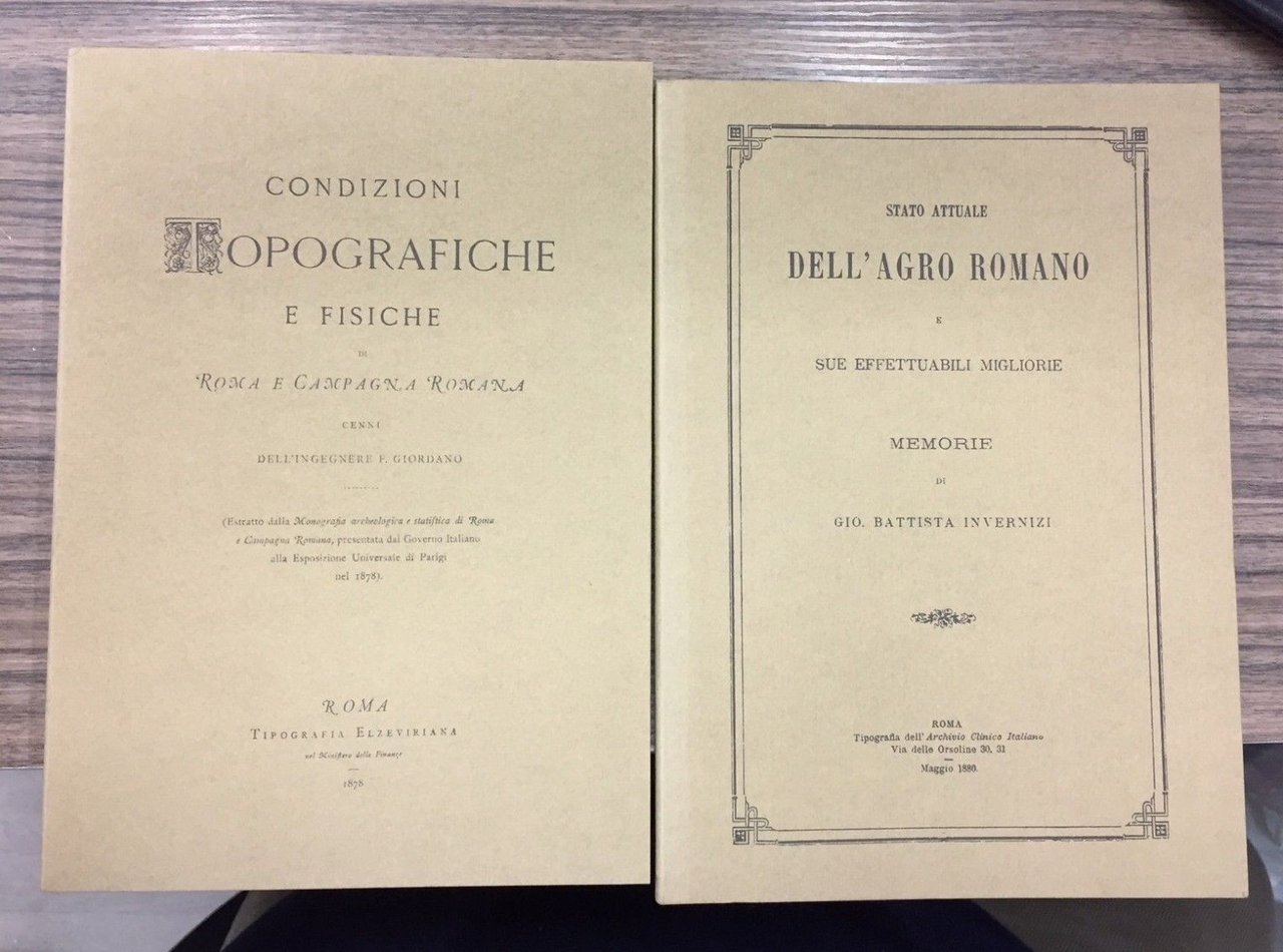 Formia 1994, 8°, pp. 86. Ristampa anastatica dell'edizione Roma 1878. Cofanetto contenente anche: Stato attuale dell'Agro Romano e sue effettuabili migliorie. Memorie di Gio. Battista Invernizi. Formia 1994, pp. 112. Ristampa dell'edizione Roma 1886.