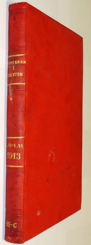 Conferenze e prolusioni. Periodico quindicinale, Unione Tipografico-Editrice Torinese, s.l. (ma stampato a Roma, presso la Stamperia Reale D. Ripamonti), anno VI (1913), annata completa di 24 numeri (di cui uno doppio) rilegata, pp. VII, 480, ill. b.n., cm 28, legatura in tutta tela con titoli e fregi in oro al dorso. Minime tracce d'uso, segni del tempo, per il resto volume ben conservato, completo di frontespizio originale dell'annata.