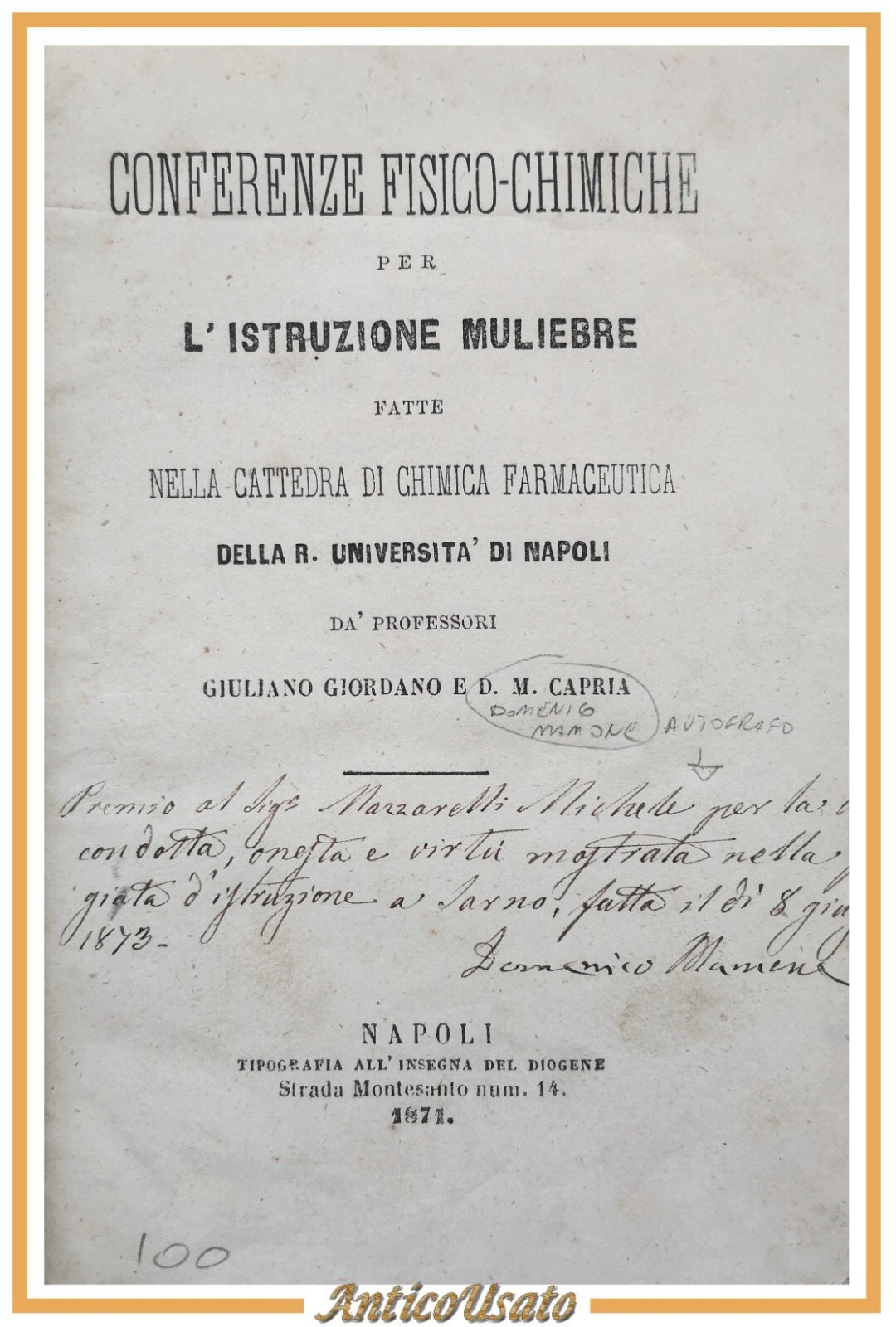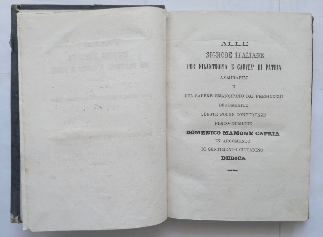 CONFERENZE FISICO CHIMICHE PER L'ISTRUZIONE MULIEBRE 1871 libro antico autografo