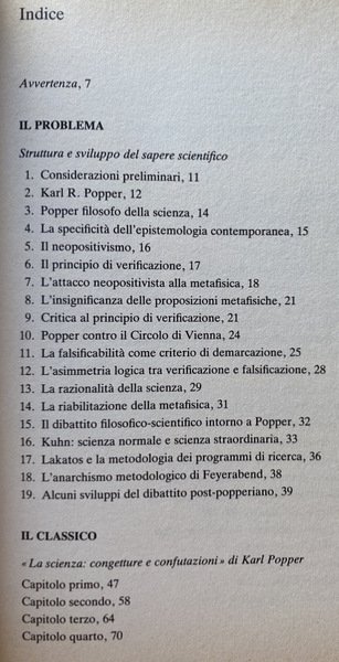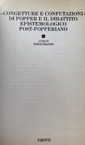 Soggetti: Filosofia, Antologie, Classici, Critica, Scienza, False scienze, Letture, Sussidi, Epistemologia popperiana, Metafisica, Dibattiti filosofici, Saggistica, Riferimento, Consultazione, Ricerca, Falsificabilità, Falsificazione, Libertà, totalitarismo, Induzione, Società aperta, Liberalismo sociale, Marxismo, Nemici, Televisione, Hegel, Logica della scoperta scientifica, Conoscenza oggettiva, Bibliografia, Libri rari, Studi, Libri Vintage Fuori catalogo, Dario Antiseri, Ludovico Geymonat, Thomas Kuhn, Paradosso della tolleranza, Determinismo, Verificazione, Falsificazionismo, Evoluzionismo, Progresso scientifico, Osservazione, Teoria, Verità, Certezza, Cultura, Novecento, Dialettica, Politica, Teorie, Non-scienza, Metodo scientifico, Presocratici, Testi fondamentali, Università, Ipotesi, Congetture, Confutazioni, Conferenze, Ignoranza, Ragione, Manuali, Scolastica, Didattica, Scuole superiori, Salvatore Natoli, Storia, Errori, Pensiero, Kant, Previsioni, Argomentazione, Affermazione, Atteggiamento, Congettura, Conseguenze, Dottrina dubbio empirico soprattutto esempio esiste esperienza Spiegare, Espressioni, Falso, Eraclito, Idea umana, Induzione, Inferenza, Interpretazione, Linguaggio, Leggi, Materia, Significato, Insignificante, Natura, Osservazioni, Passaggio originale, Predizioni, Principi, Probabilità, Problema, Pura domanda razionale, Risultato Confutato, Regole, Senso, Simile, Società, Fonti, Parlare, Affermazione, Suggerire, Verificabile, Test, Tesi, Tradizione, Svolta, Capire, Universale valido, Dichiarazione testabile, Razionalismo critico, Circolo di Vienna, Scuola di Francoforte, Eugenio Garin, Emanuele Severino, Neopositivismo, Equivoci, Linguistica, Proposizioni, Definizioni, Analisi logica, Giovanni Reale, Nicola Abbagnano, Insignificanza, Neurath, Empirismo, Autobiografia intellettuale, Logik for Forschung, L. Lentini, David Hume, Demarcazione, Limiti, Relativismo, Wittgenstein, Pseudoscienza, Idee, Empedocle, Grecia, Nietzsche, Freud, Io, Es, Parmenide, Einstein, Newton, Socrate, Eddington, Poscritto, Postulato, Comportamento umano, Coincidenze, Matematica, Psicanalisi, Alfred Adler, Laudan, Marcuse, Testi critici, Habermas, Lakatos, Carnap, Agassi, Feyerabend, Schlick, Bartley III, Medawar, Watkins, Philosophy, Anthologies, Classics, Criticism, False sciences, Readings, Aids, Popperian epistemology, Metaphysics, Philosophical debates, Non-fiction, Reference, Consultation, Research, Falsifiability, Falsification, Freedom, totalitarianism, Induction, Open society, Social liberalism, Enemies, Logic of scientific discovery, Objective knowledge, Bibliography, Studies, Rare books Out of print, Paradox of tolerance, Determinism, Verification, Falsificationism, Evolutionism, Scientific progress, Observation, Truth, Certainty, Culture, Twentieth century, Dialectics, Politics, Theories, Theory , Non-science, Scientific method, Presocratics, Fundamental texts, Universities, Hypotheses, Conjectures, Refutations, Conferences, Ignorance, Reason, Manuals, Scholastic, Didactics, High schools, History, Errors, Thought, Forecasts, Arguments, Affirmation, Attitude, Conjecture, Consequences, Doctrine Empirical Doubt Experience Explain, Expressions, Heraclitus, Human idea, Induction, Inference, Interpretation, Language, Laws, Matter, Meaning, Insignificant, Nature, Observations, Original passage, Predictions, Principles, Probability, Problem, Pure rational question, Refuted result, Rules, Sense, Similar, Society, Sources, Talk, Affirmation, Suggest, Verifiable, Thesis, Tradition, Breakthrough, Understand, Valid universal, Testable statement, Critical rationalism, Vienna circle, Frankfurt school, Neopositivism, Misunderstandings, Linguistics, Propositions, Definitions, Logical analysis, Insignificance, Empiricism, Intellectual autobiography, Demarcation, Limits, Relativism, Pseudoscience, Ideas, Empedocles, Greece, I, Es, Socrates, Postscript, Postulate, Human behavior, Coincidences, Mathematics, Psychoanalysis, Critical texts