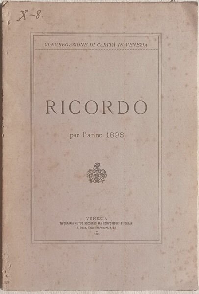 CONGREGAZIONE DI CARITÀ IN VENEZIA. Ricordo per l'anno 1896.